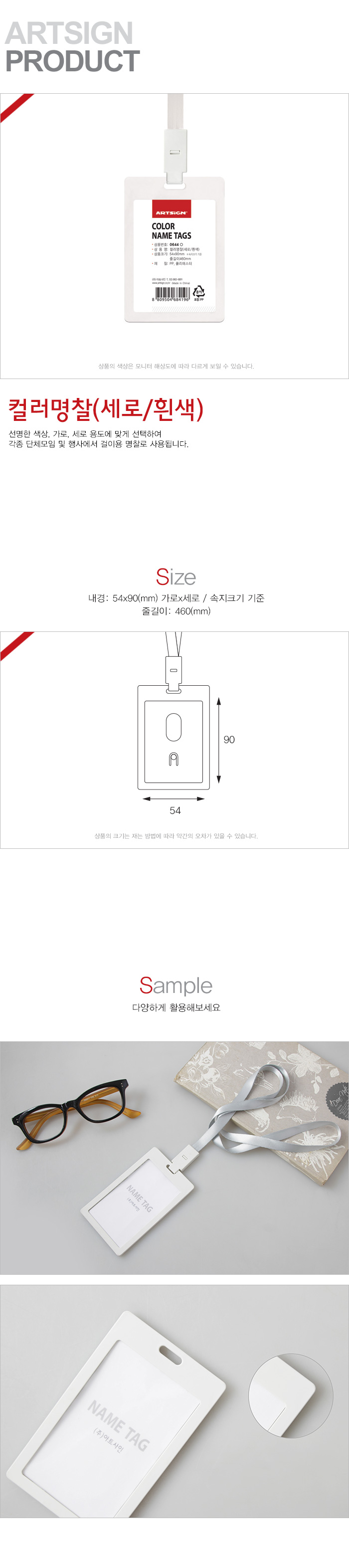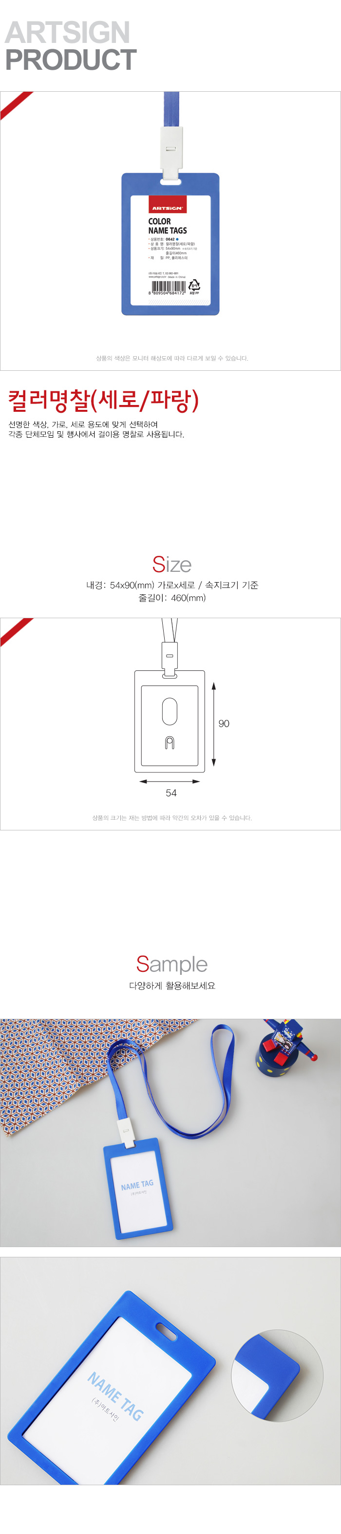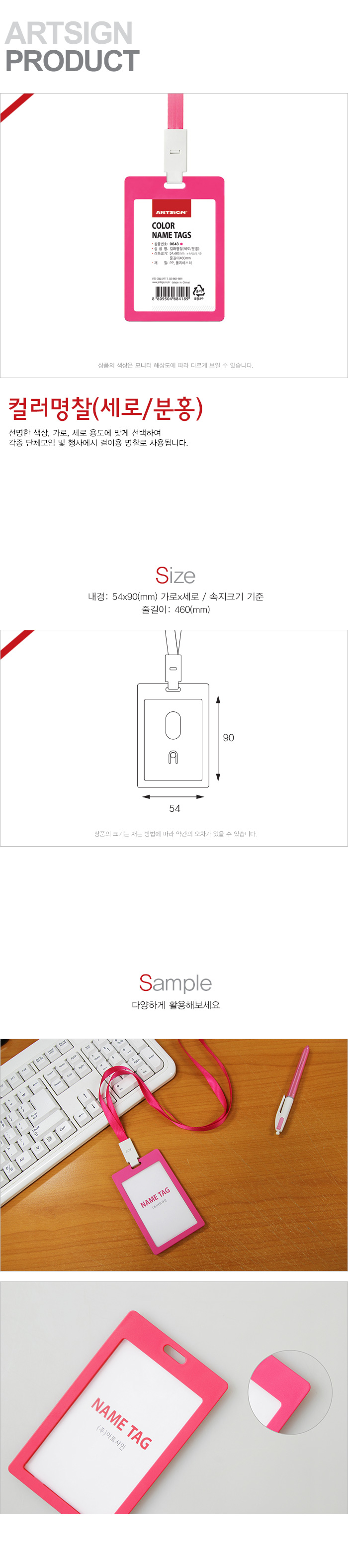 아트사인 컬러명찰 세로형 분홍 파랑 흰색
