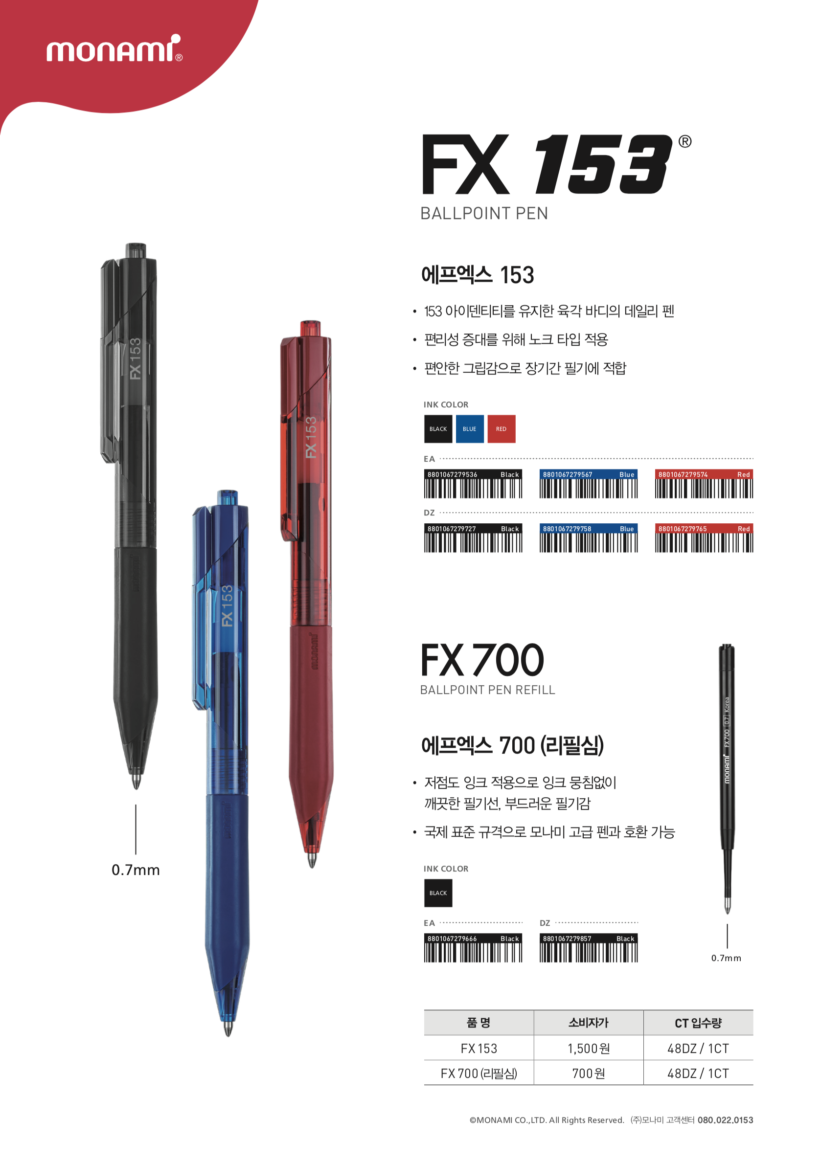 모나미 FX153 1.0mm 블랙,블루,레드