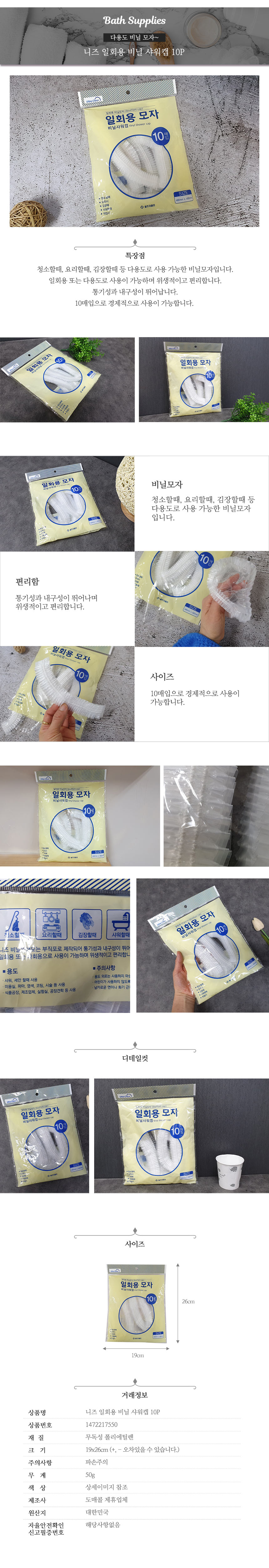 니즈 일회용 비닐 샤워캡(10개입)