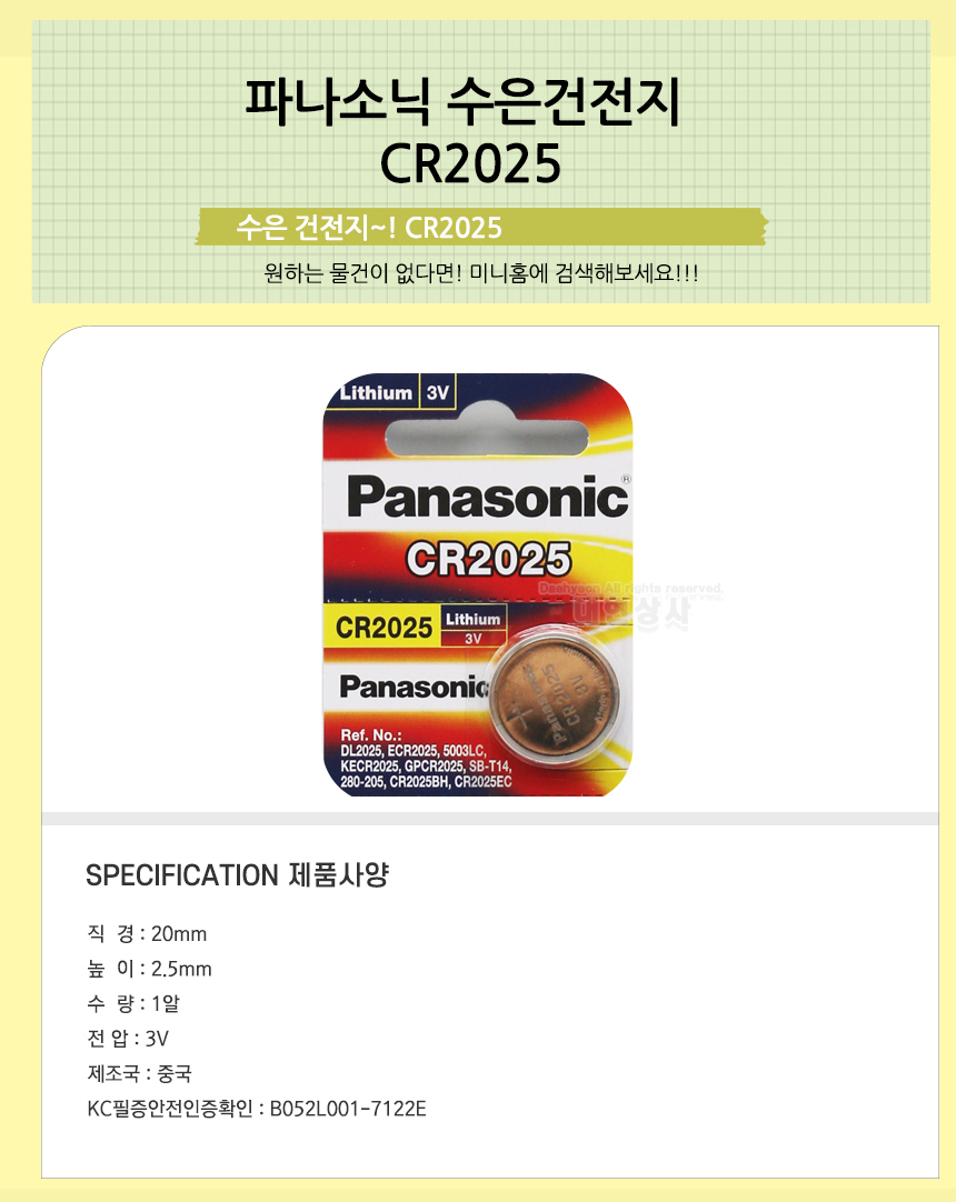 파나소닉 CR2025 코인배터리 리튬전지(1알)