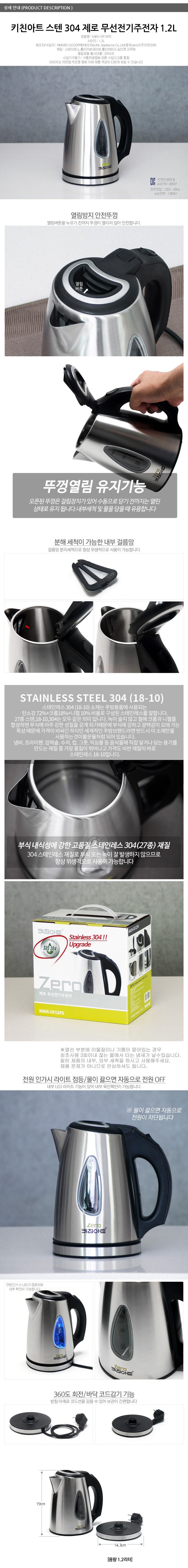 키친아트 스텐304 제로 전기주전자1.2L KAEK-GF12PS