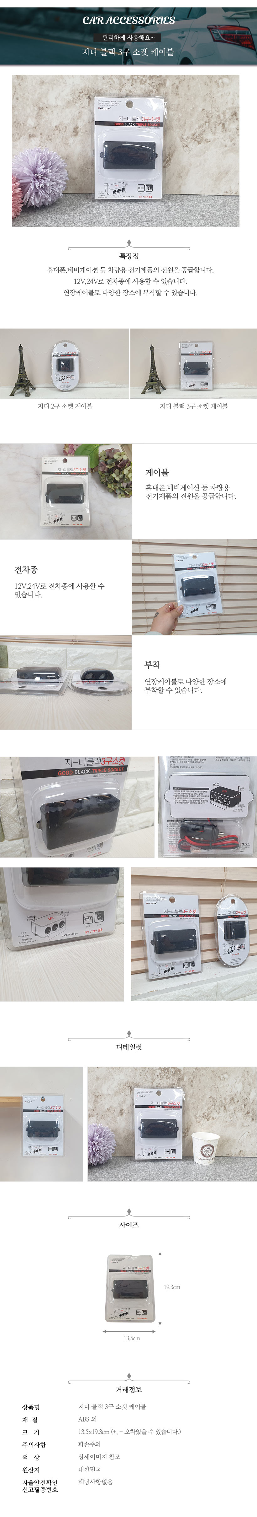 HOME > 생활잡화 > 자동차용품 > 차량용충전기 > 지디 블랙 3구 소켓 케이블