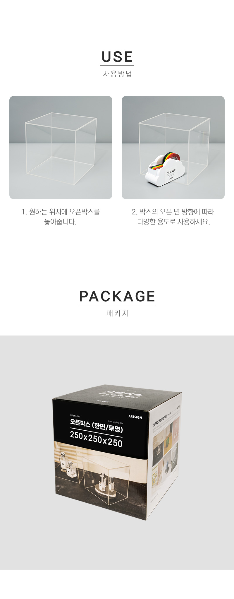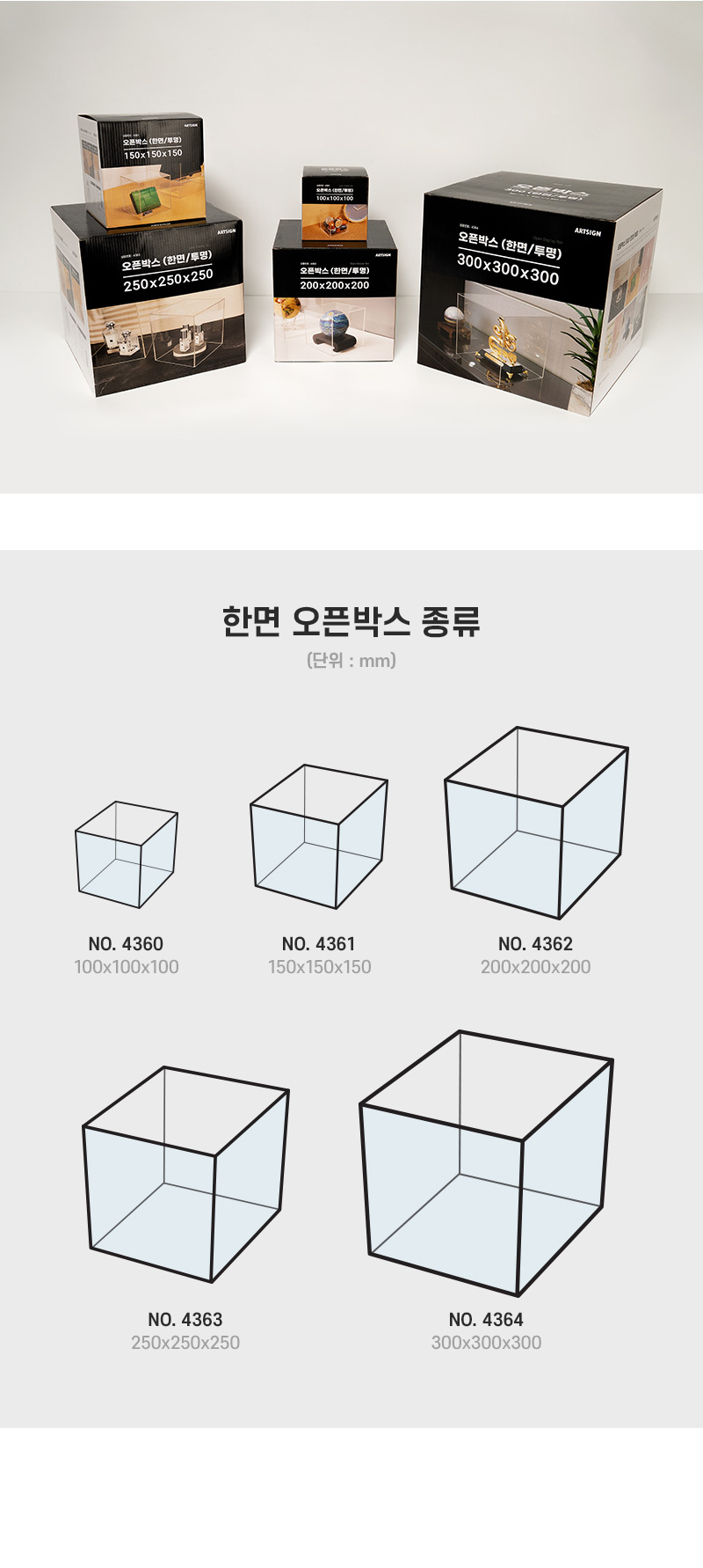 아트사인 오픈박스 250 한면/투명 4363
