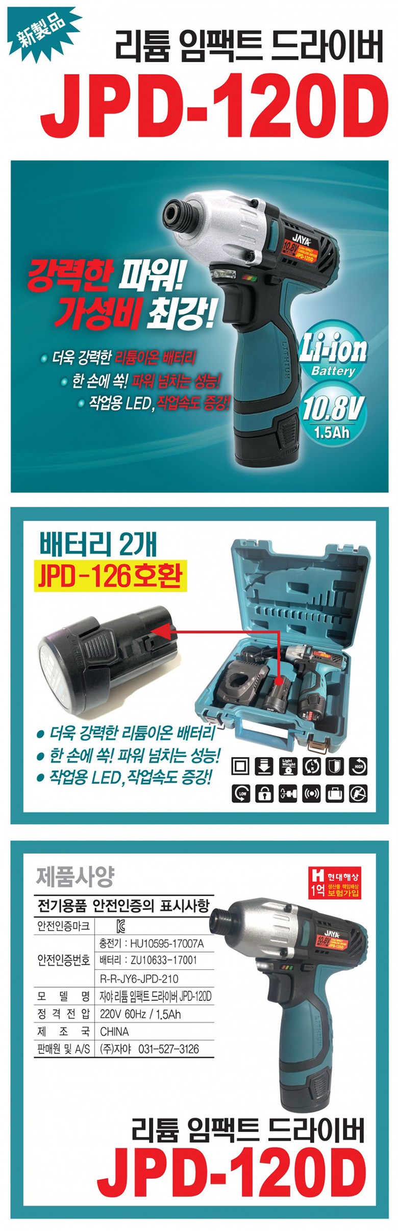 JPD-120D 자야 리튬이온 임팩트 드라이버 전동드릴