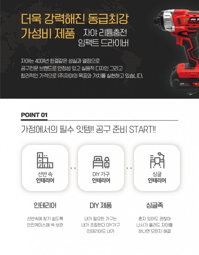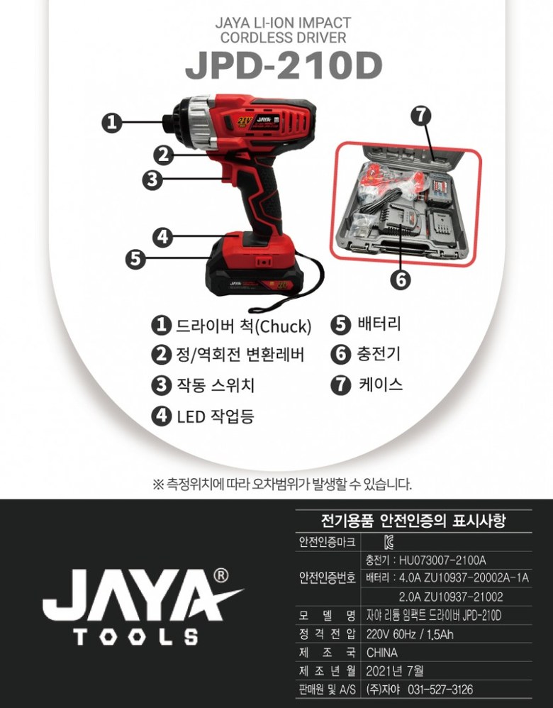 HOME > 인테리어/공구/DIY > 목공용품 > 목공용 공구 > 자야 초강력 리튬충전 임팩트 드라이버 JPD-210D