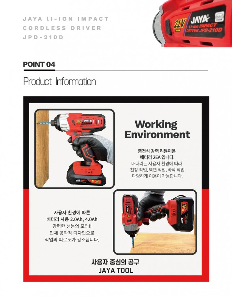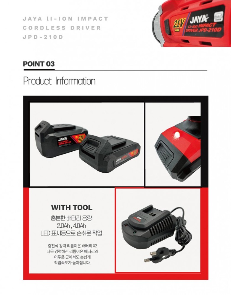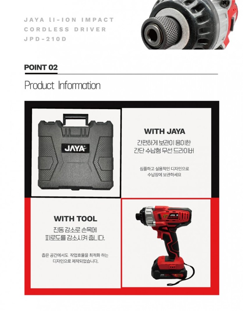 자야 초강력 리튬충전 임팩트 드라이버 JPD-210D