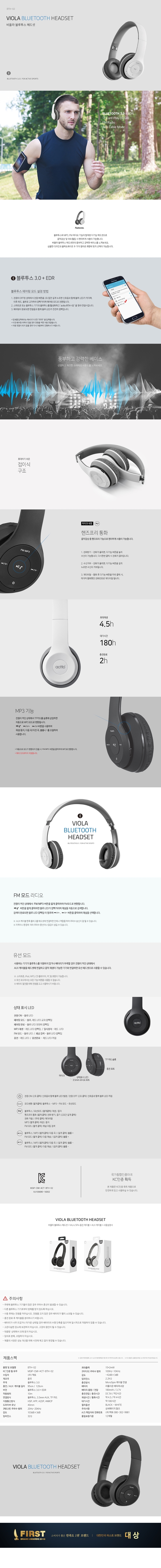 엑토 비올라 접이식 블루투스 헤드폰 헤드셋 BTH-02 화이트