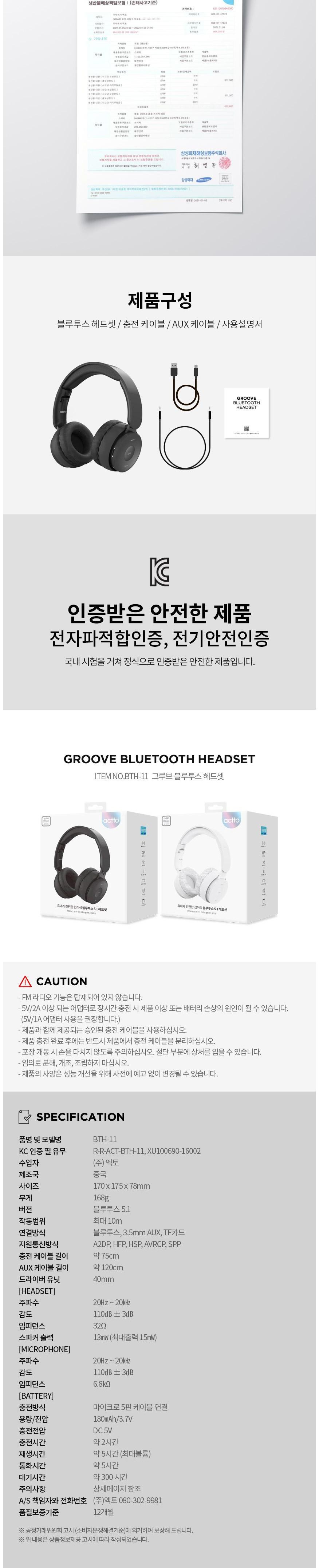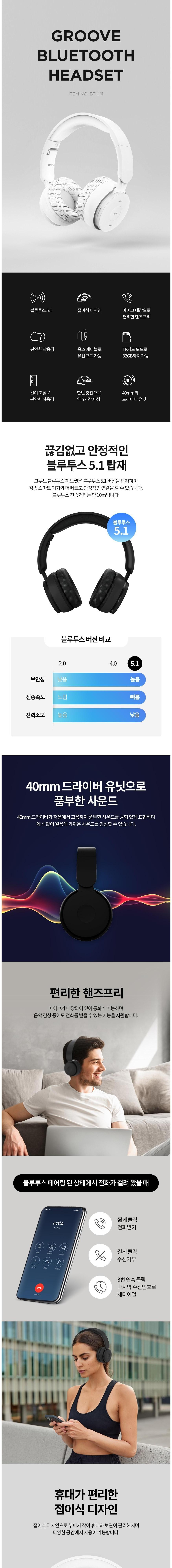 엑토 접이식 핸즈프리 유무선 블루투스 헤드셋 BTH-11
