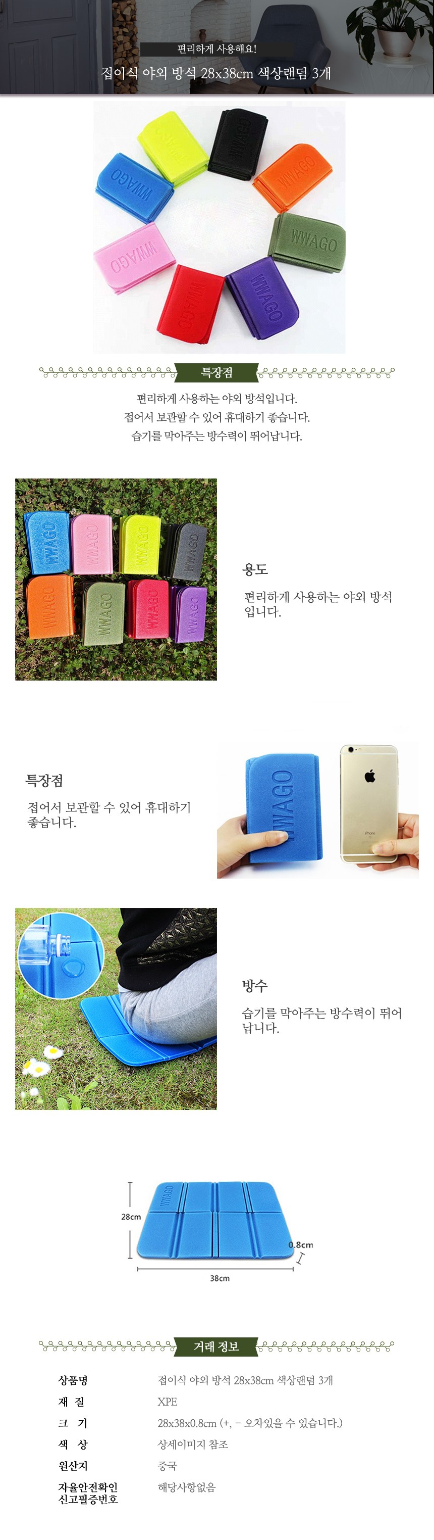 abm 접이식 야외 방석 3p 1세트 색상랜덤