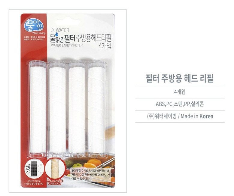 HOME > 욕실/주방/청소용품 > 욕실용품 > 샤워/목욕용품 > 물아낌 DR 필터 주방용헤드 리필 4개입