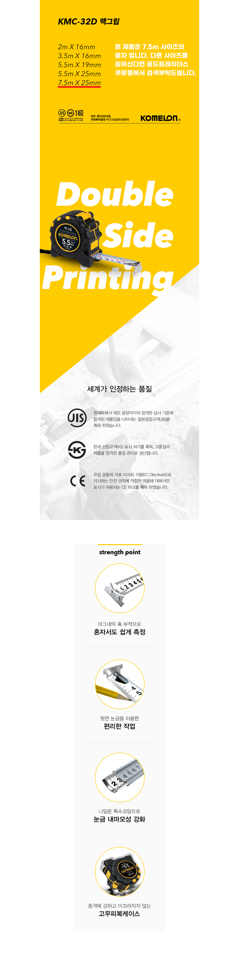 코메론 맥그립 양면 눈금 줄자 7.5m x 25mm KMC-32d