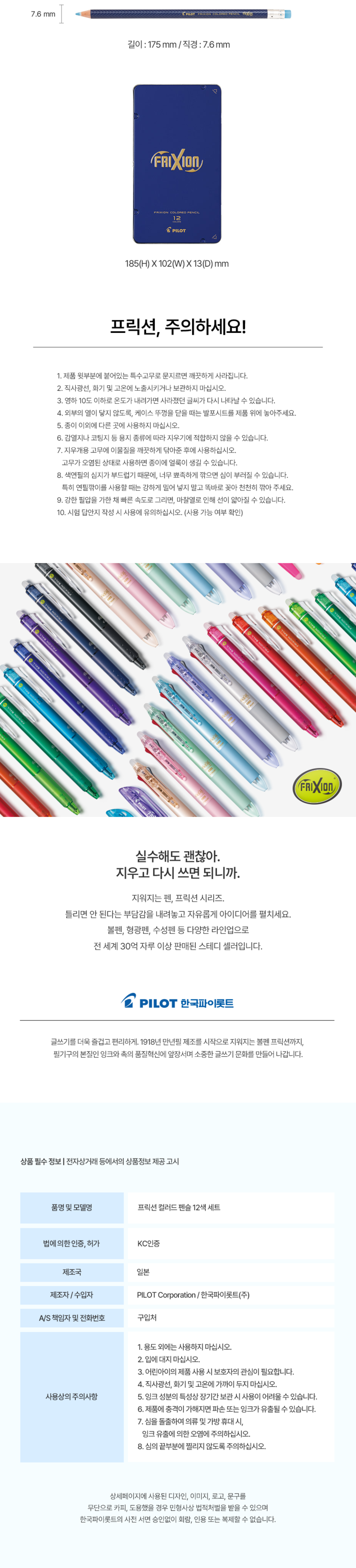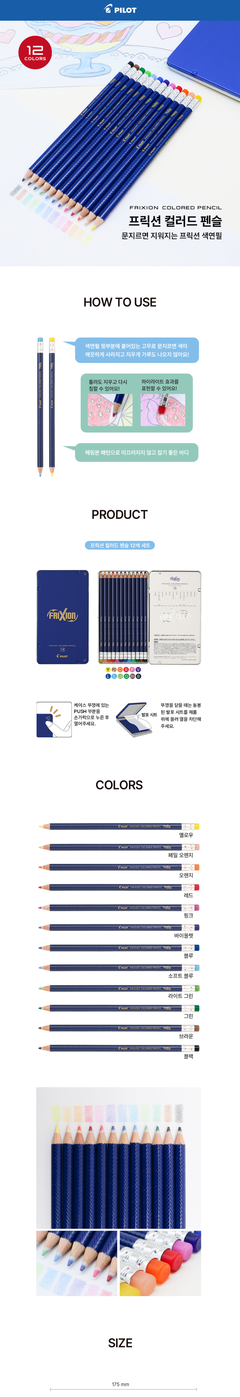 파이롯트 프릭션 컬러드 펜슬 지워지는 색연필 12색세트