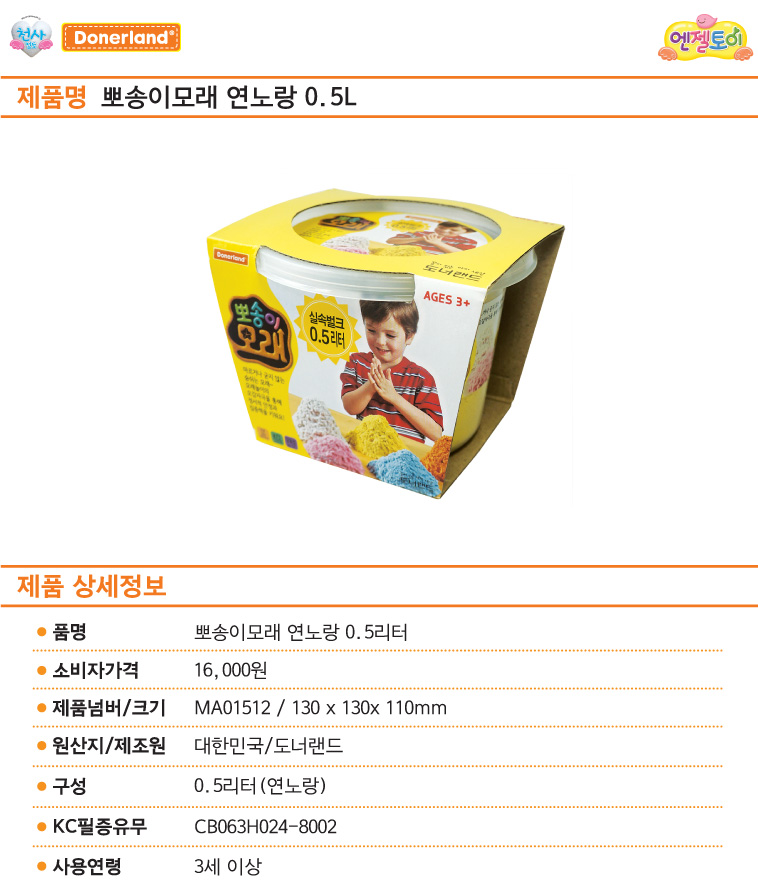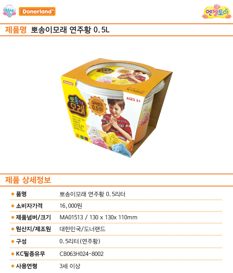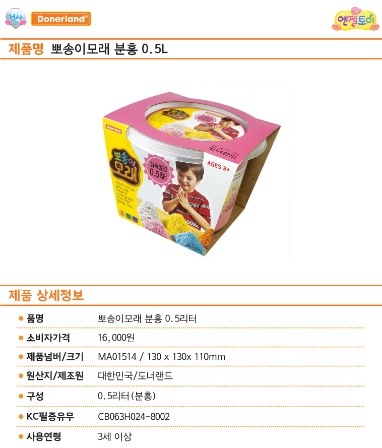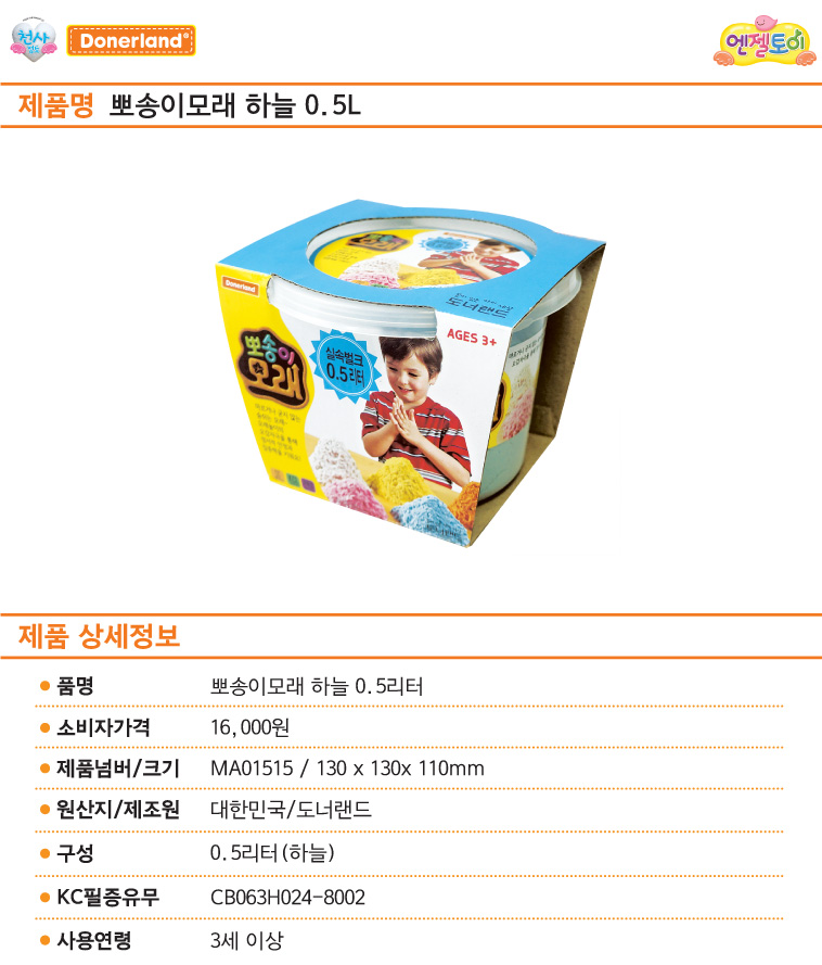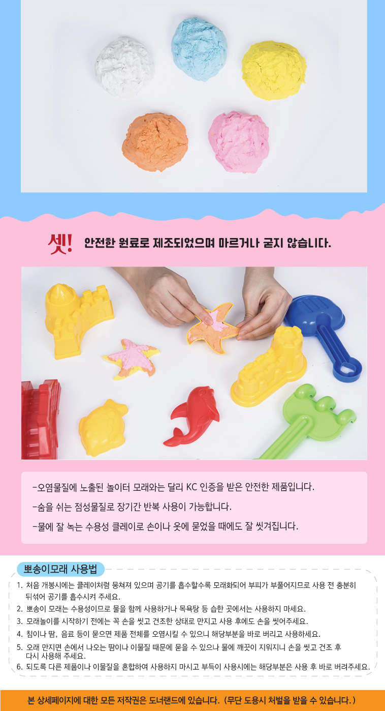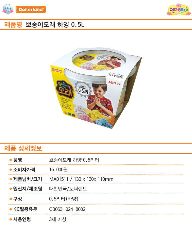 도너랜드 뽀송이모래 0.5L 흰색 연주황 연노랑 분홍 하늘