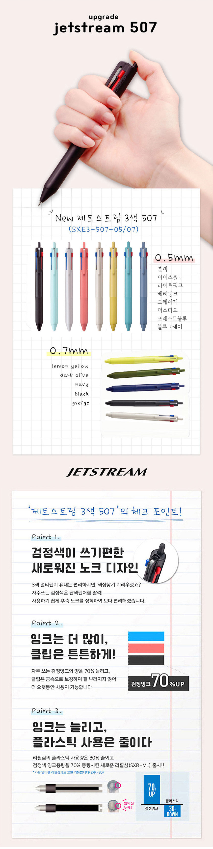 유니 제트스트림3 3색볼펜 SXE3-507-07 0.7mm 색상랜덤