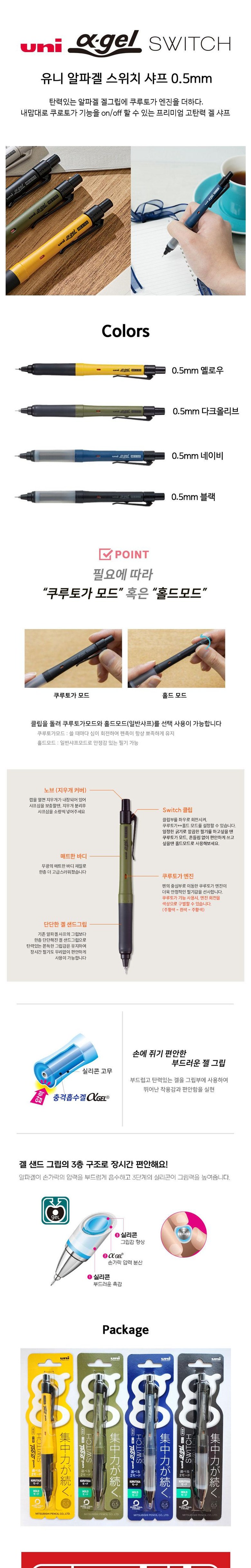 유니 알파겔 스위치 샤프 0.5 색상랜덤