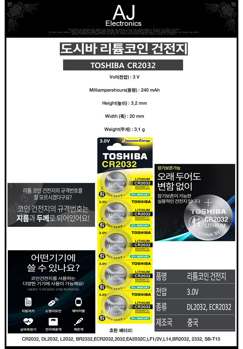 HOME > 인테리어/공구/DIY > 전기용품 > 건전지 > CR2032 코인배터리 리튬전지(1알)